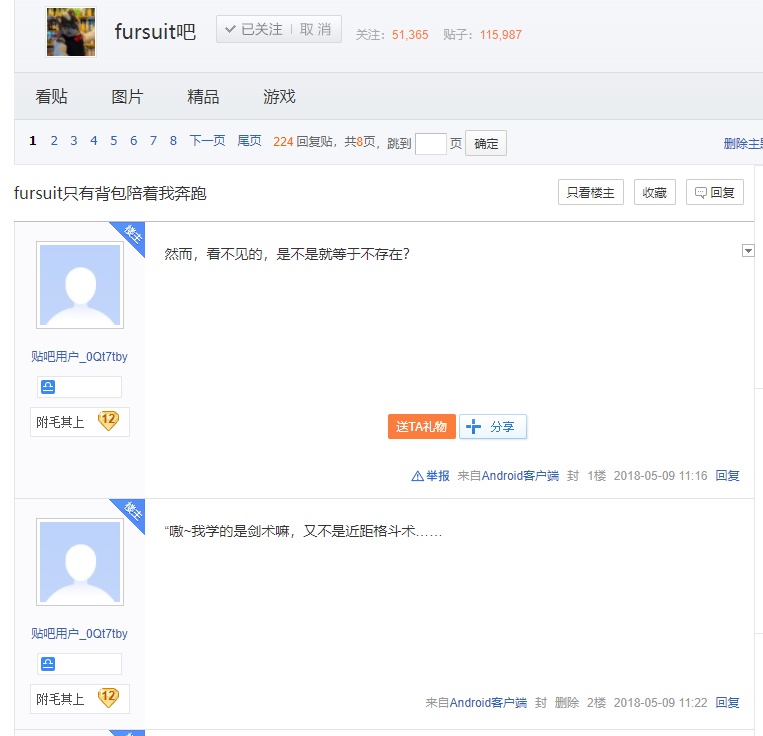 2017 年 6 月至 2018 年 7 月,fursuit 吧间断遭受爆吧,时间跨度一年有余。
